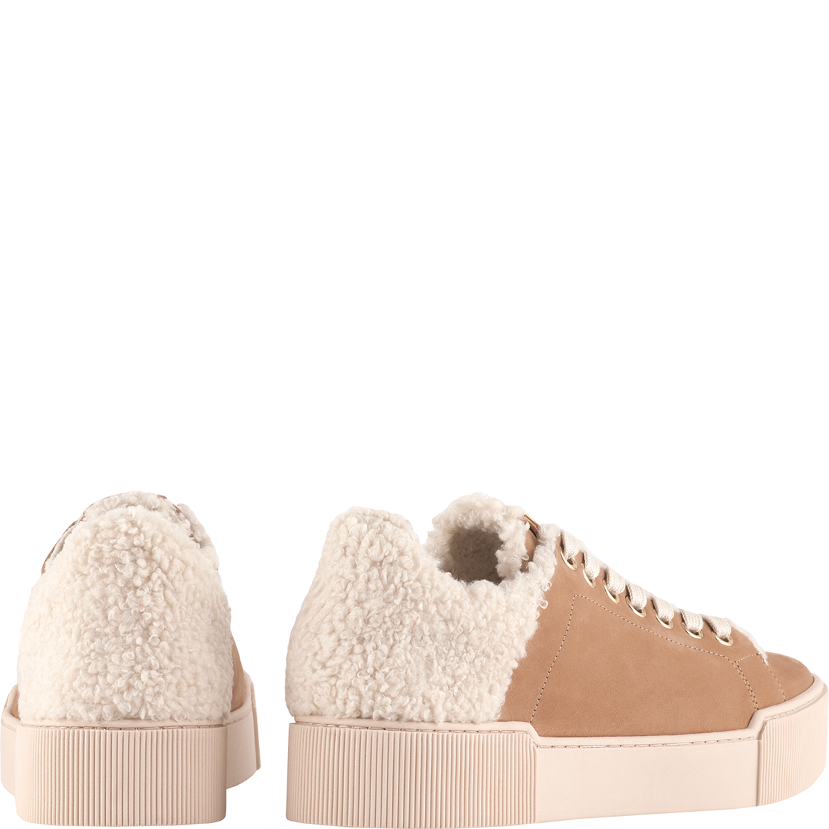 Das weiche Teddy-Fell als Fersenelement dominiert in Kombination mit der geriffelten Sohle die Optik des Sneakers „Fluffy“. In warmem Braun brilliert das samtige Leder aus nachhaltiger Produktion, während im Inneren eine Schurwollsohle und eine Teddy-Fütterung Ihre Füße warmhalten. Neben dem sportiven Look der Sohle punktet diese insbesondere mit ihrer Rutschfestigkeit. Smart casual fungiert der Sneaker als entspannter Alltagsbegleiter mit charmantem Winterlook. Besonders schön in Kombination mit unserer Tasche „Judy“ und der kuscheligen Jacke „Liz“ Im Teddylook.